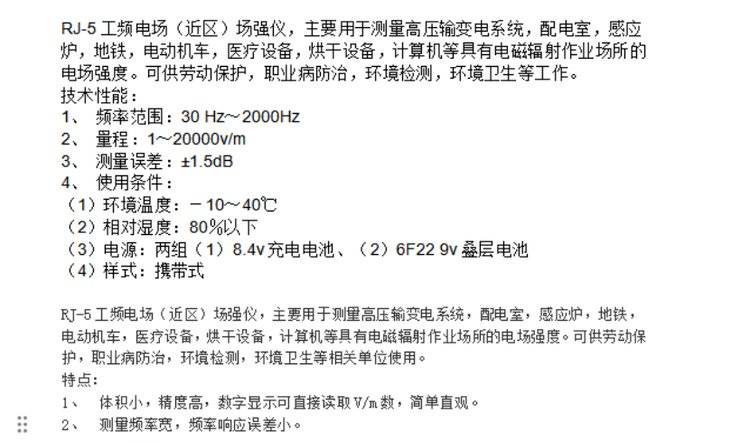 RJ-5工频电场(近区)场强仪 测量频率宽 频率响应误差小